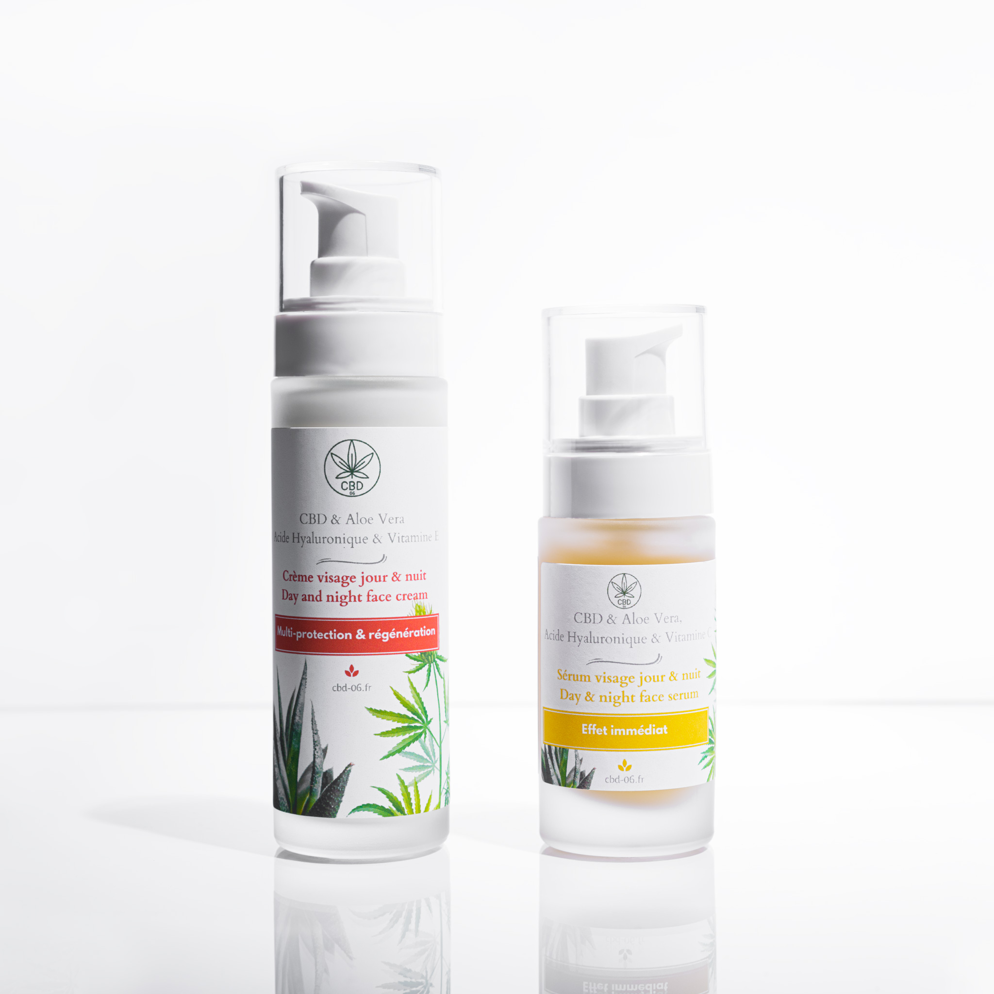 Sérum pour le visage au CBD, Aloe Vera et acide hyaluronique, Vitamine C :